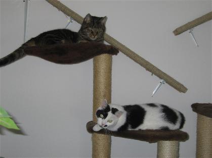 Unsere Dosenöffner haben uns in der Zeitung gefunden, in einer Anzeige der Tierhilfe Lahn-Dill e.V. und haben sich sofort in uns verliebt. Wir waren arg misshandelt und menschenscheu (Mikesch hasste Männer) und mit 10 + 12 Monaten noch lang nicht erwachsen.