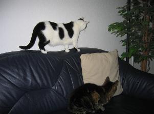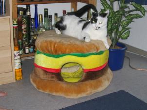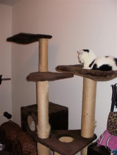 Mein alter Kratzbaum... steht jetzt in Vaterns Fitnesszimmer - aber wir geben ihn nicht her!