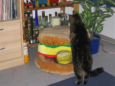 Und ja, das ist eigentlich ein Katzenklo, aber da Pelz beim Fressen immer so